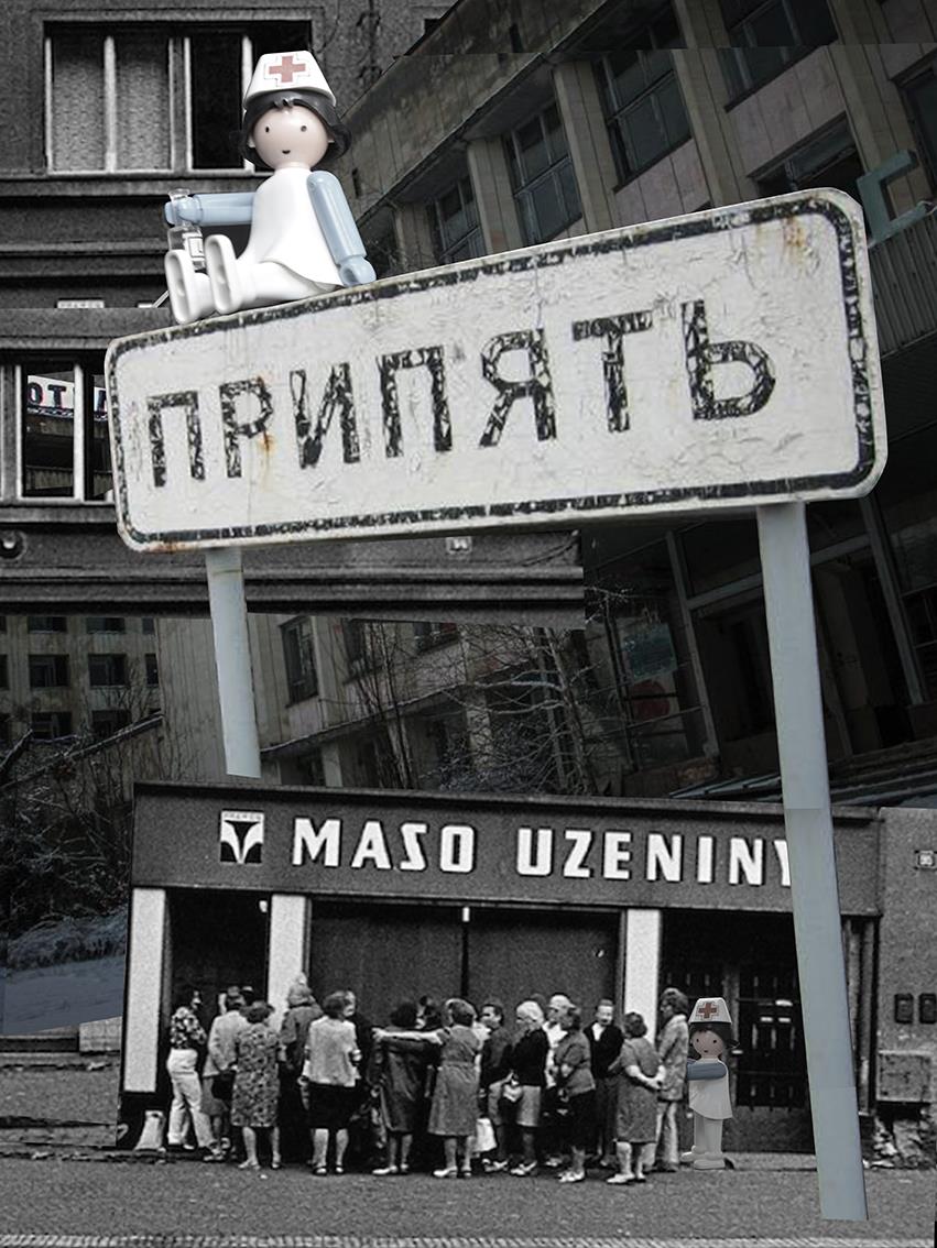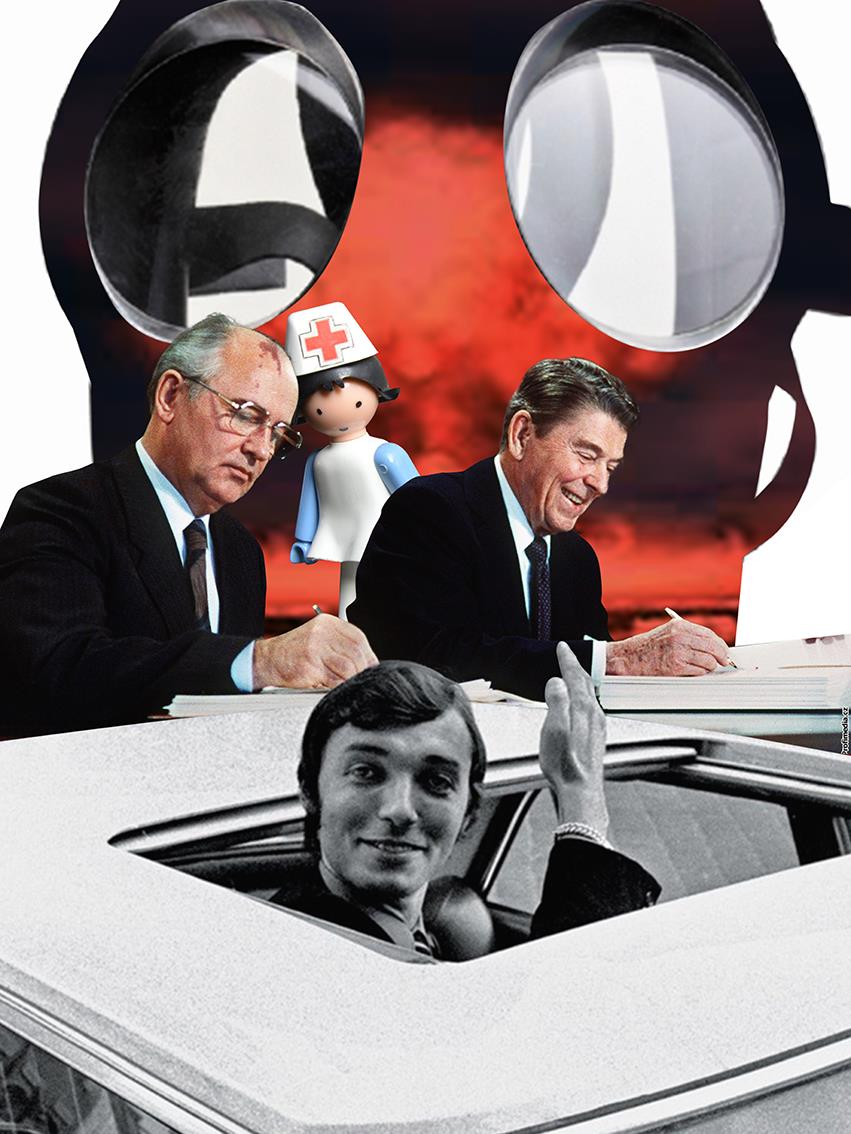 Studená válka, pozdní 80. léta, rozporuplnost a absurdita doby optikou nezaujatého dítěte. /fotomontáže/